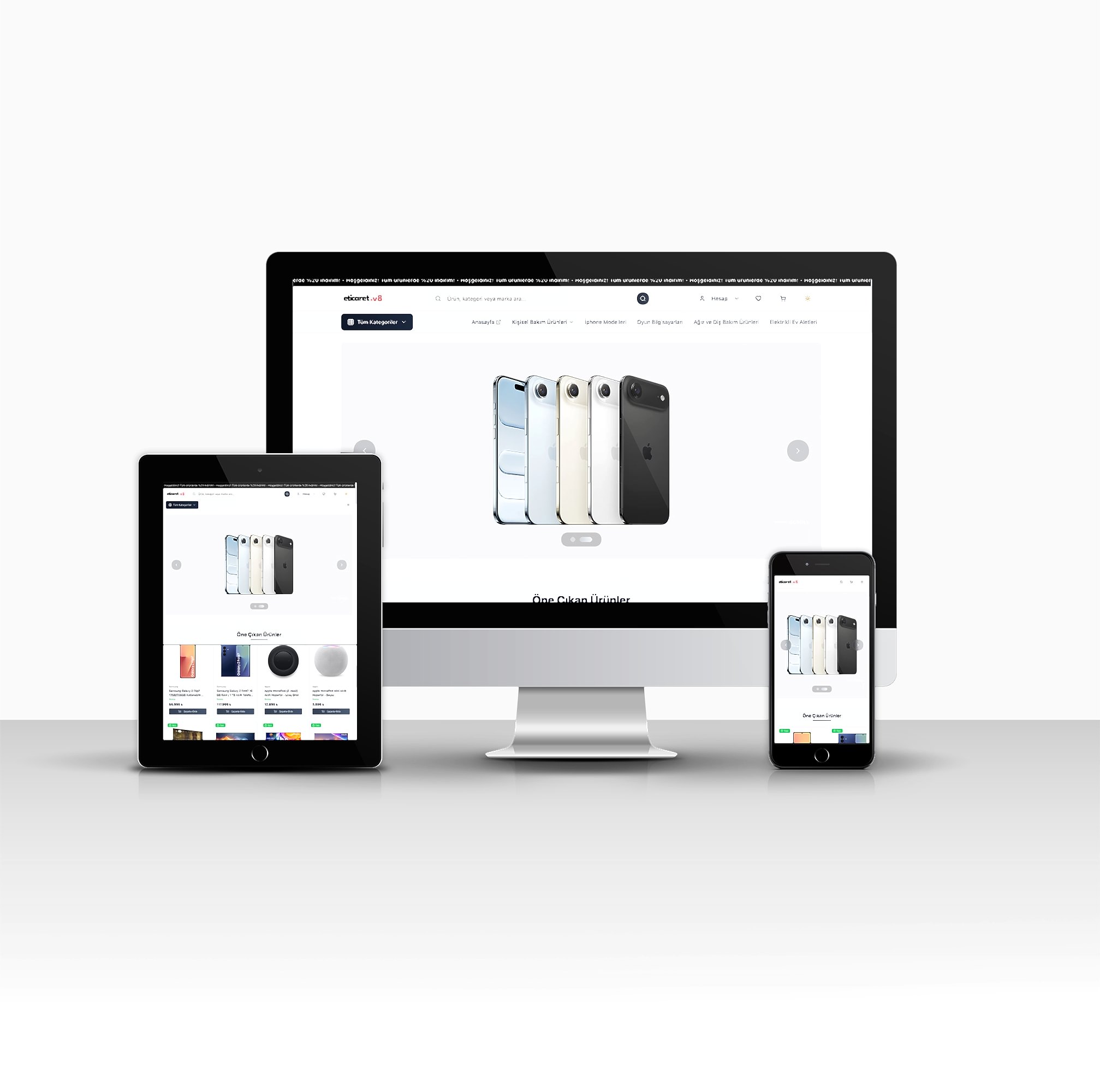 Modern e-ticaret siteniz, kullanıcıların tercihlerine göre otomatik olarak koyu veya açık tema ile görüntülenir. Gece kullanımında göz yorgunluğunu azaltırken, gündüz kullanımında mükemmel okunabilirlik sağlar.